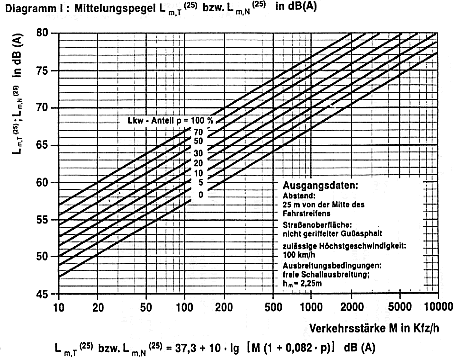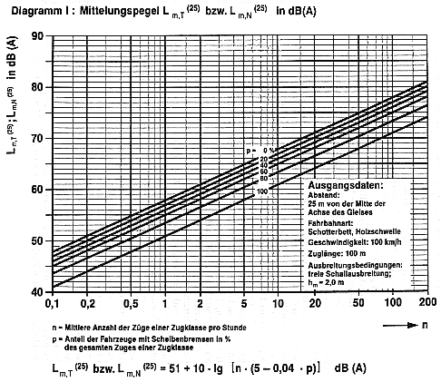 | Lm,T(25) | Mittelungspegel in dB(A) für den Tag (6.00 bis 22.00 Uhr) nach Diagramm I. |